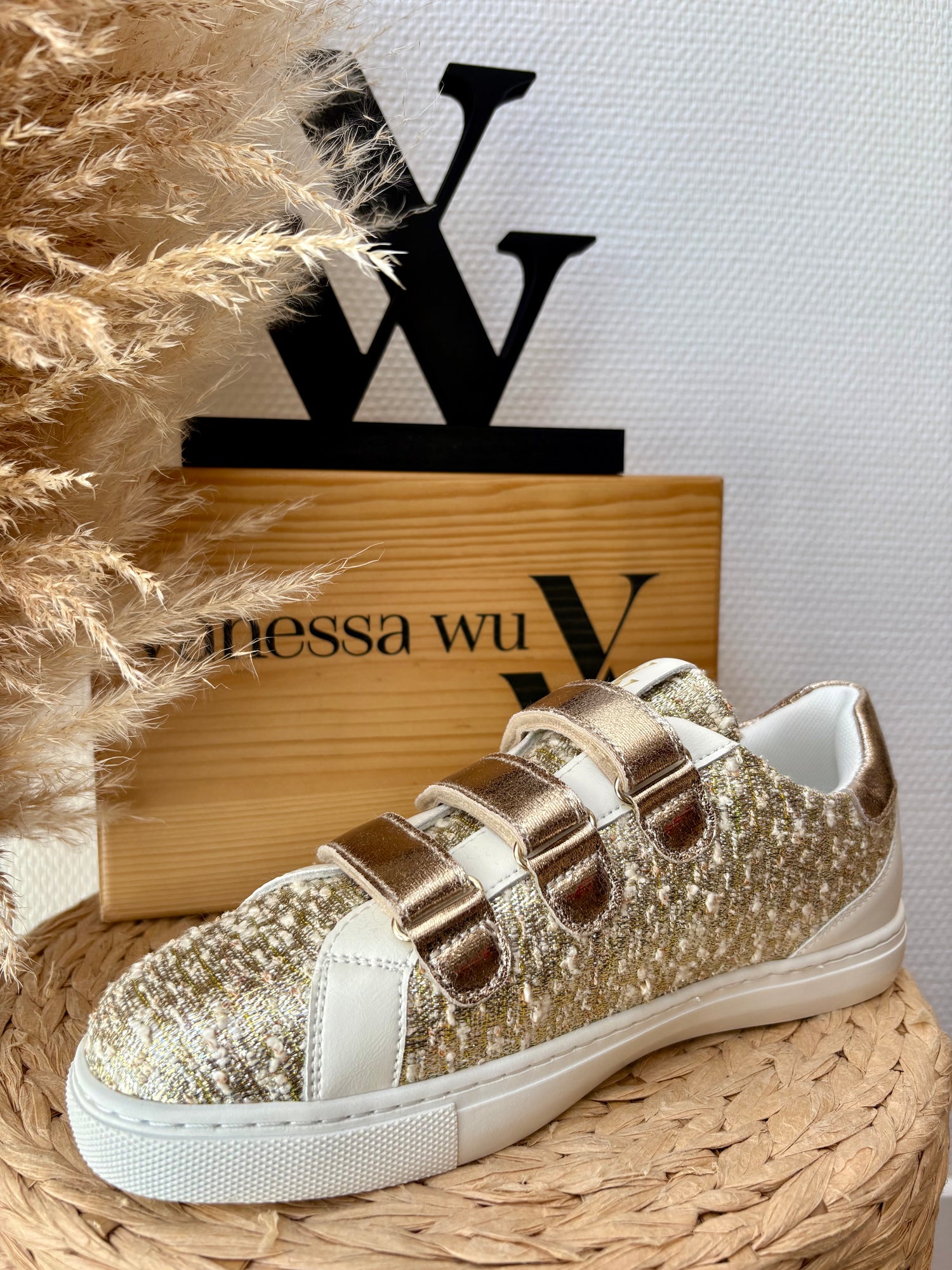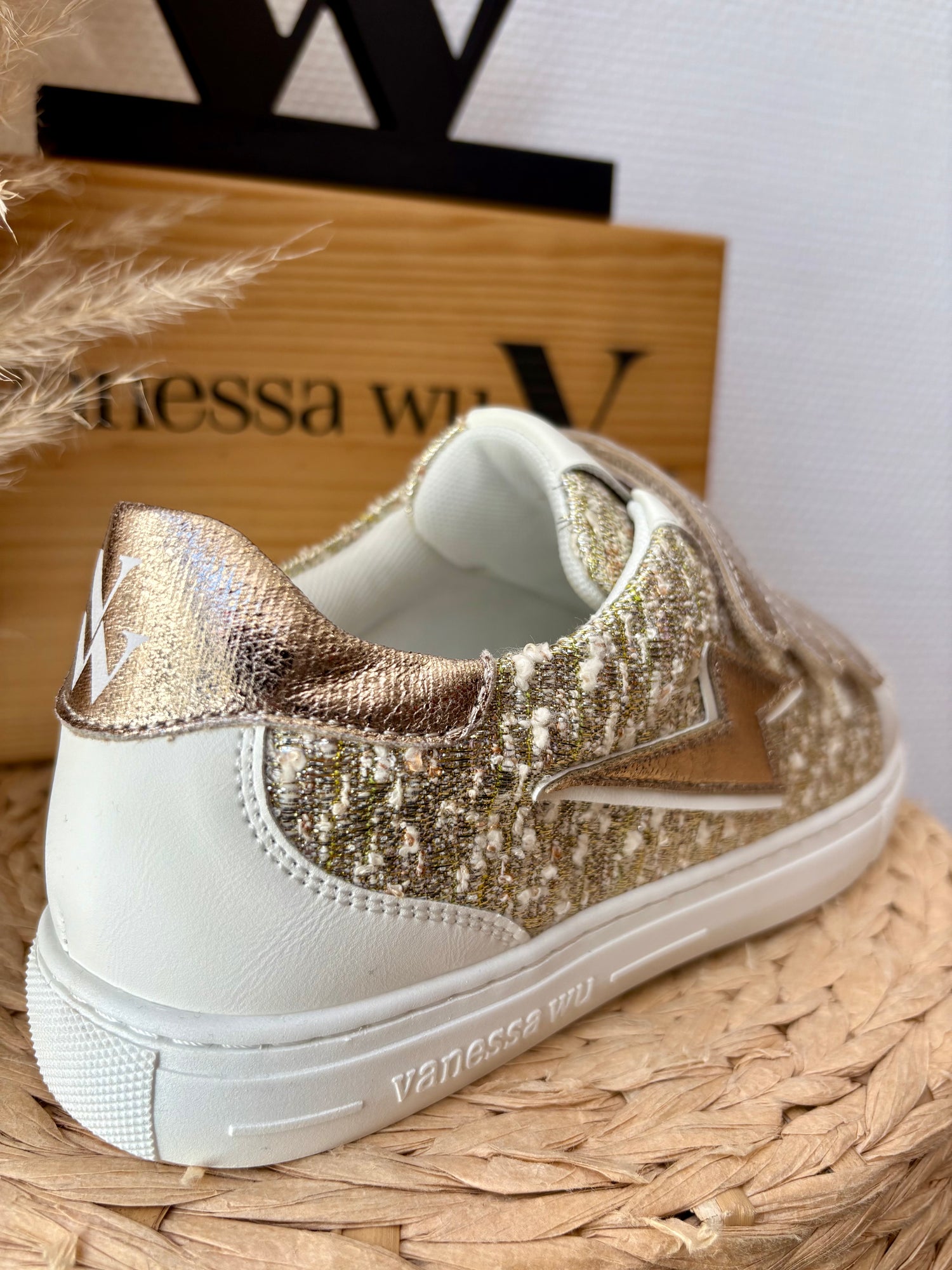 - Baskets en tweed lurex or, argent, beige clair et rose gold