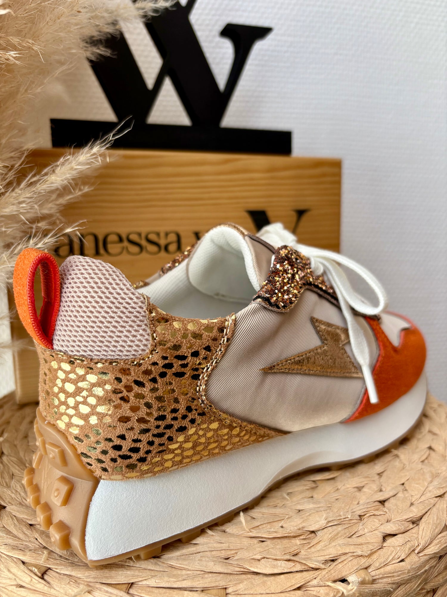 - Contrefort en suédine beige à imprimé guépard or effet miroir