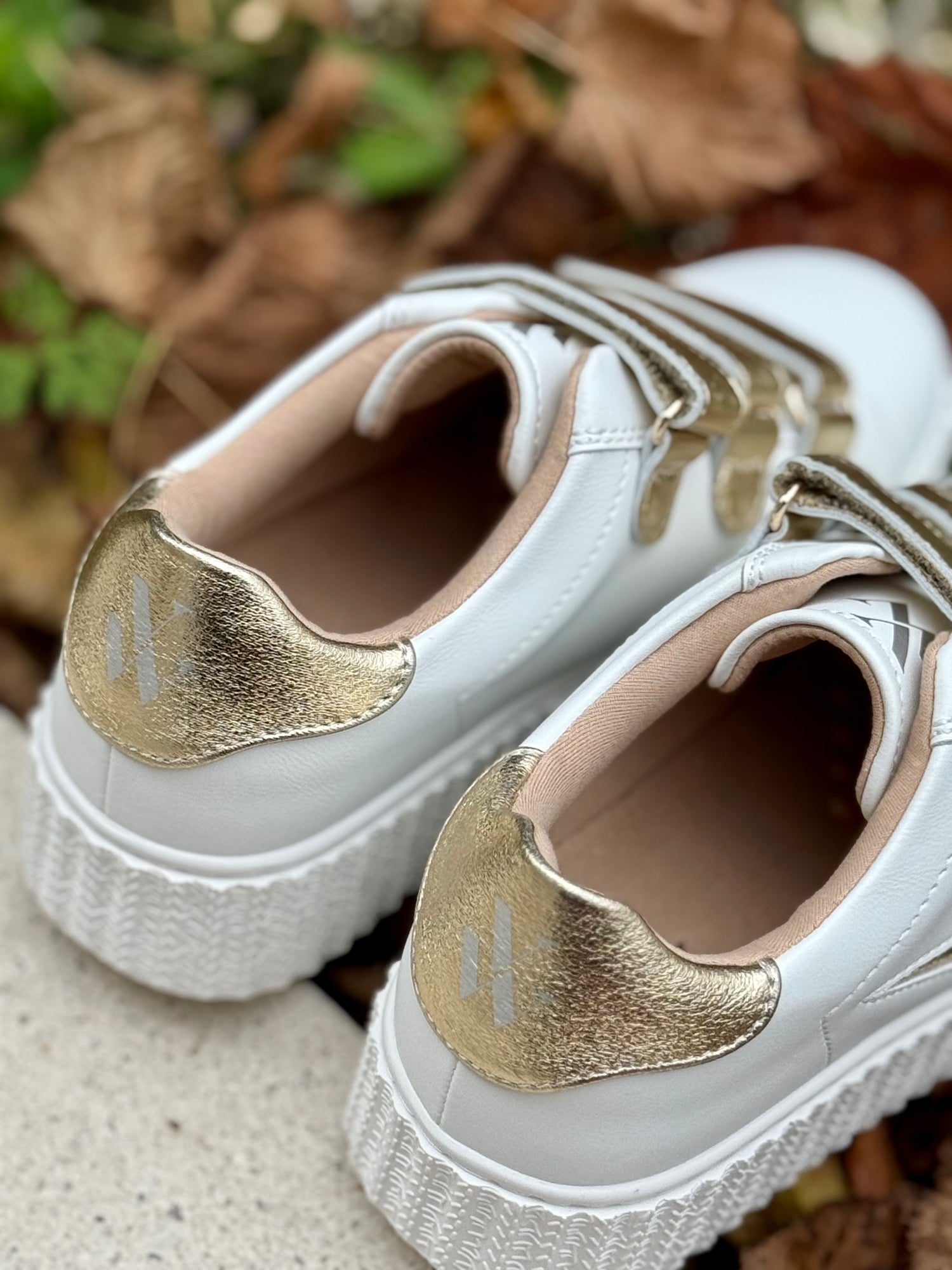 - Baskets en similicuir blanc