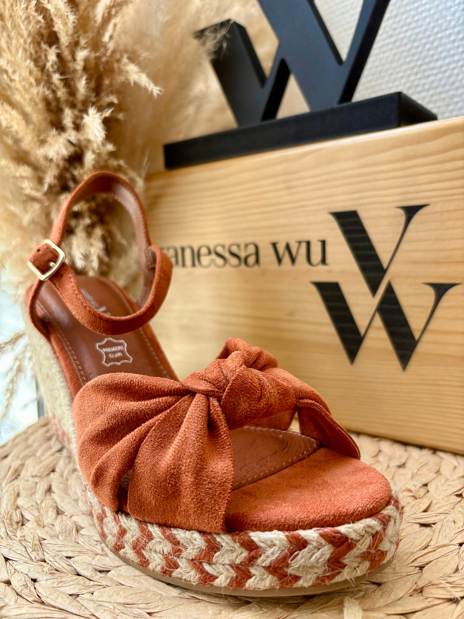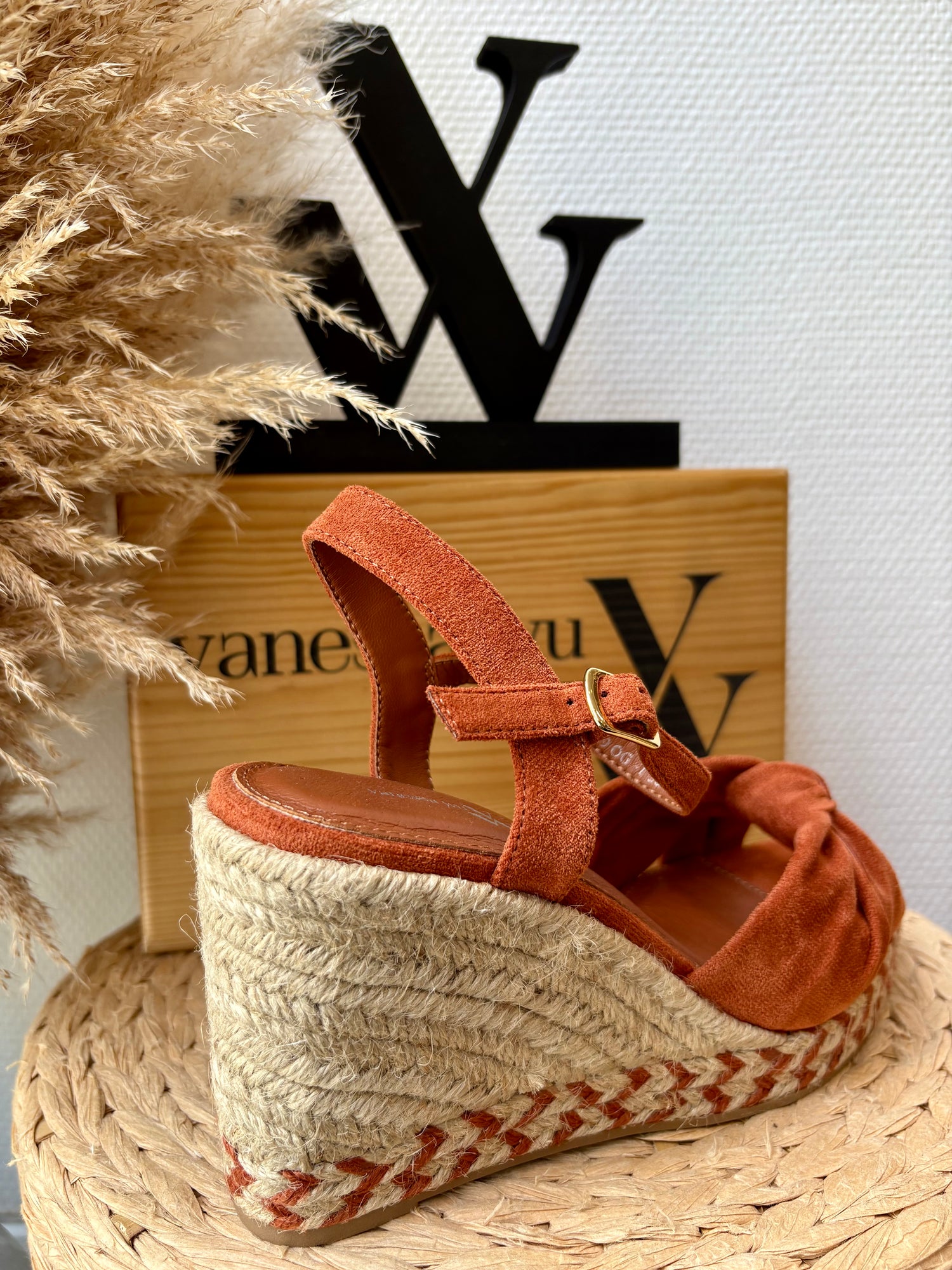 - Semelle compensée en corde, avec plateforme tressée rouge brique et beige
