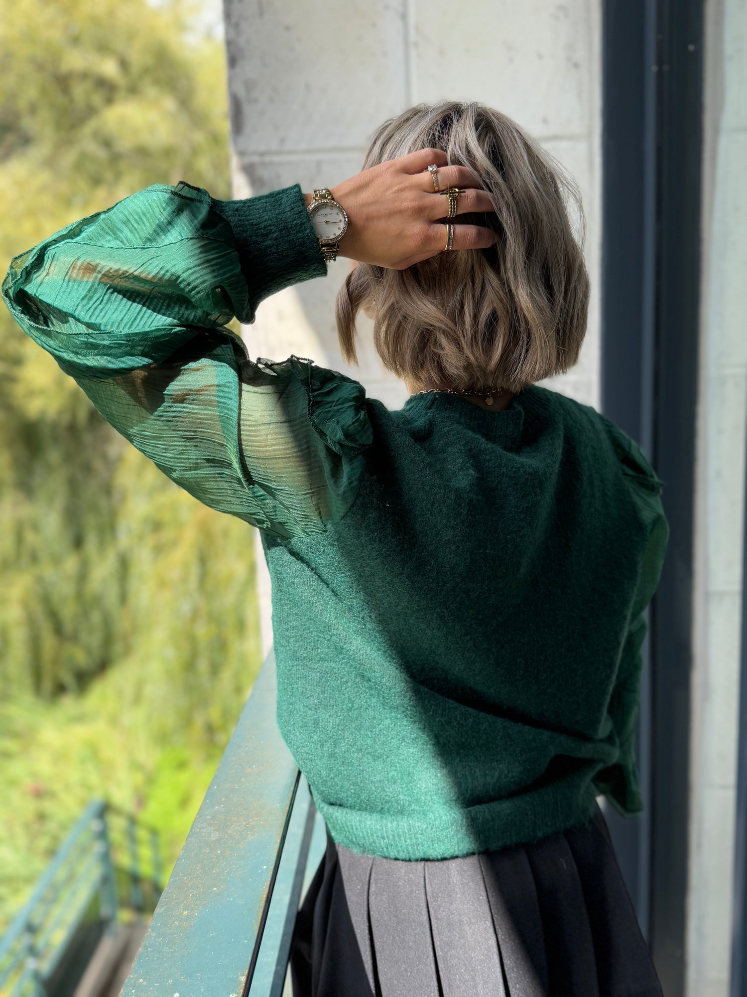 - Détails manche satiné et volante