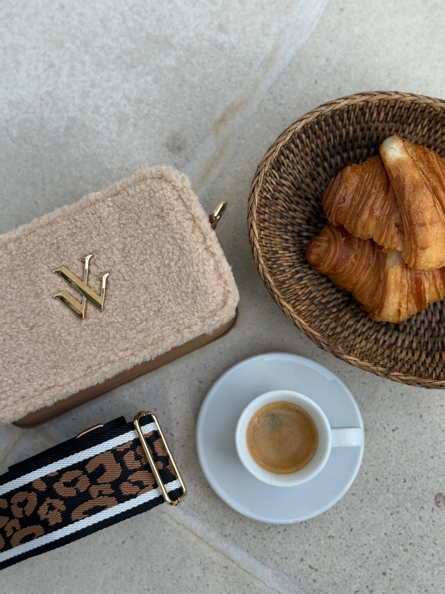 - Bandoulière large amovible et réglable, en tissu noir à logo embossé