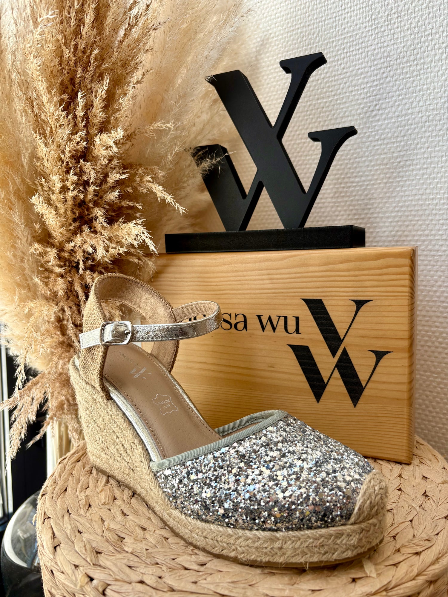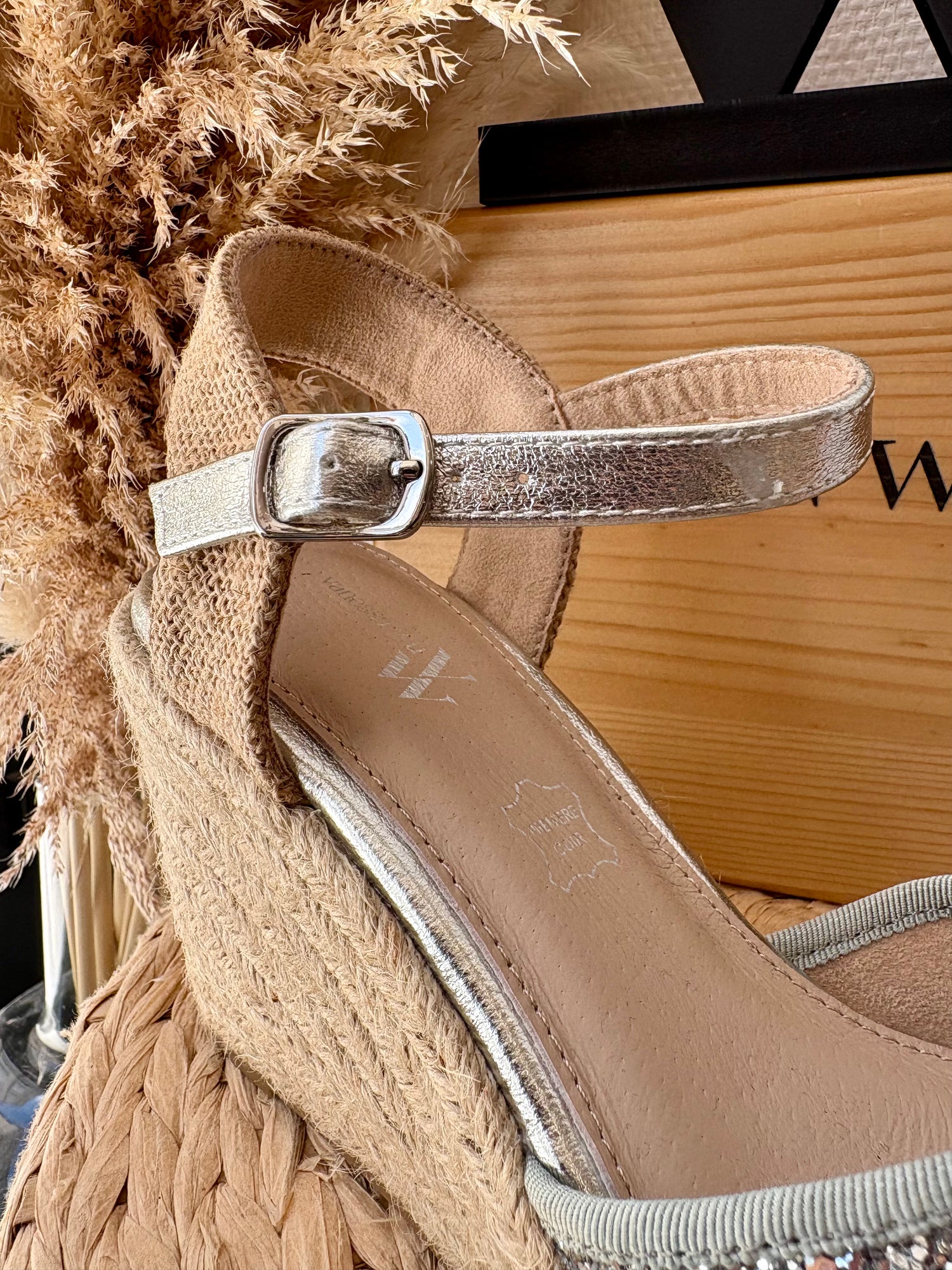 - Bout en amande renforcé par un empiècement en corde tressée beige